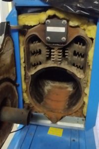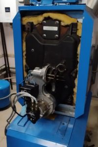 Выяснилось, что котлу около 10 лет, и техническое обслуживание за всё время эксплуатации не проводилось ни разу. В такой ситуации на дизельных котельных чаще всего страдают расходники горелки и возрастает риск закоксовки теплообменника.