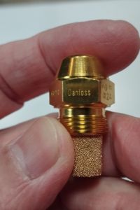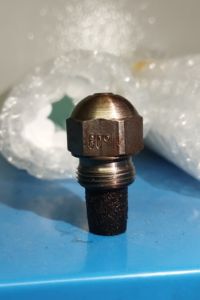 Так как мы изначально ехали с предположением о неисправности насоса, электродов и форсунки с собой не было. Кроме того, горелка Logatop BE2.2 — редкая модель, и запчасти под неё не всегда есть в наличии. Мы согласовали дальнейшие действия с заказчиком и заказали оригинальные электроды и дизельную форсунку Buderus.